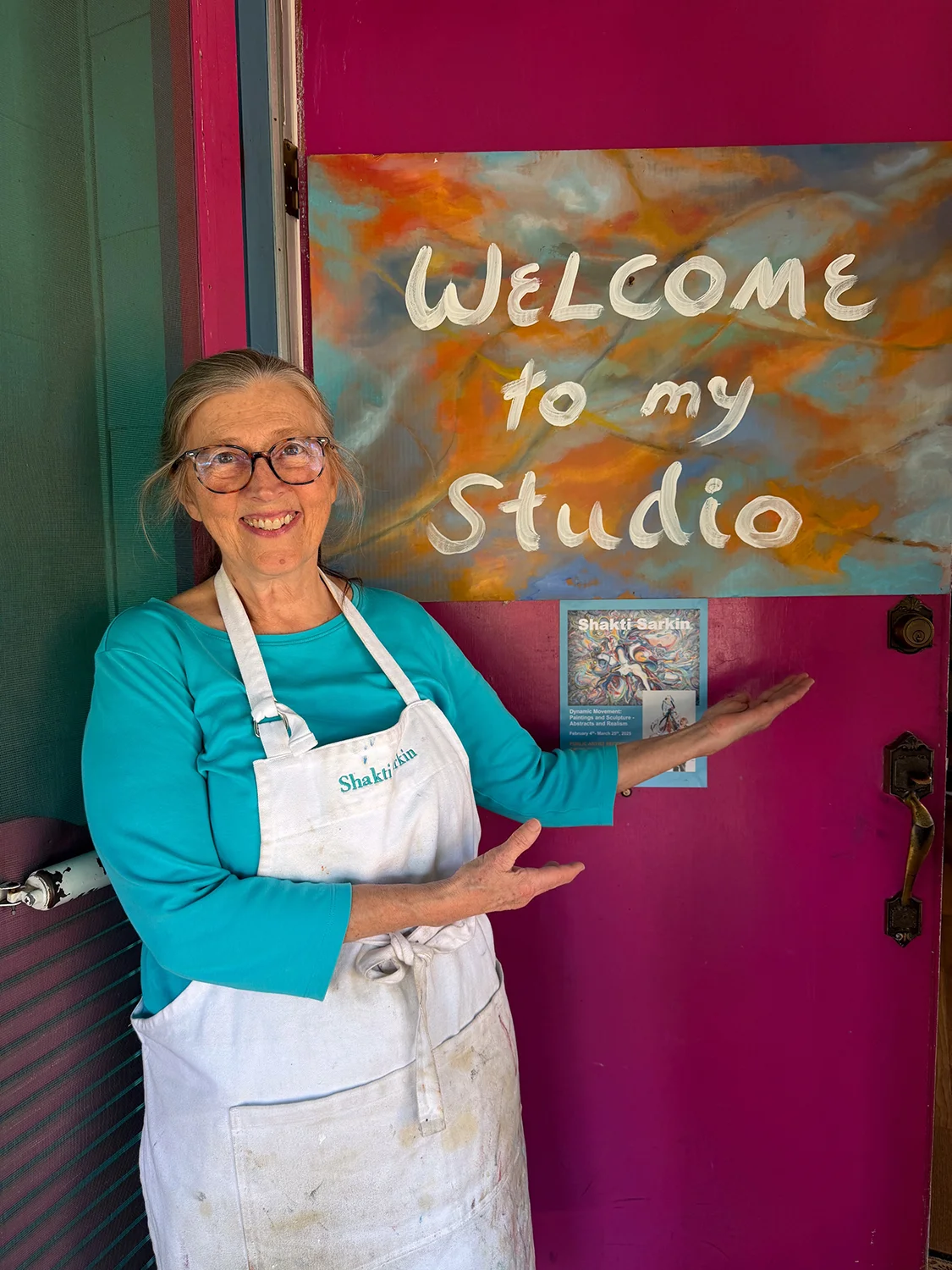 Shakti Sarkin was born in Ohio, received her BFA with a Painting and Sculpture focus, at Kent State University, and lived in Los Angeles, England and South Africa, before residing in 78704 for the past 27 years. Before her children went off to college, she worked small-scale on her dining room table using soft pastels. Since then, with encouragement from her husband, she took over her home’s large front room for her studio where she paints larger canvases in oils, watercolors and acrylics. Shakti also creates metal sculptures by welding steel rod and affixing painted bark to them. Shakti’s artworks encompass figurative work, landscapes and abstracts.